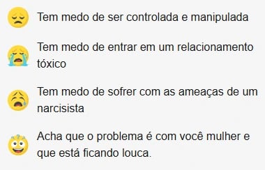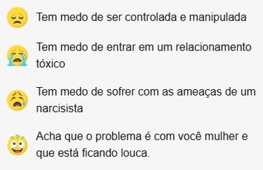 Ignorar tudo que eu quero te entregar manipulada por homens narcisistas, continuar com medo de entrar em mais um relacionamento tóxico, continuar se sentindo insegura, perdendo tempo e energia com homens que não vão te dar valor