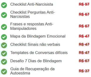 Veja tudo que você vai receber com o Seu Guia Anti-Narcisismo