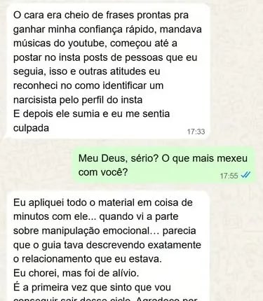 Agora é só aplicar as técnicas do Seu Guia Anti-Narcisista e começar a se blindar de relacionamentos desgastantes.